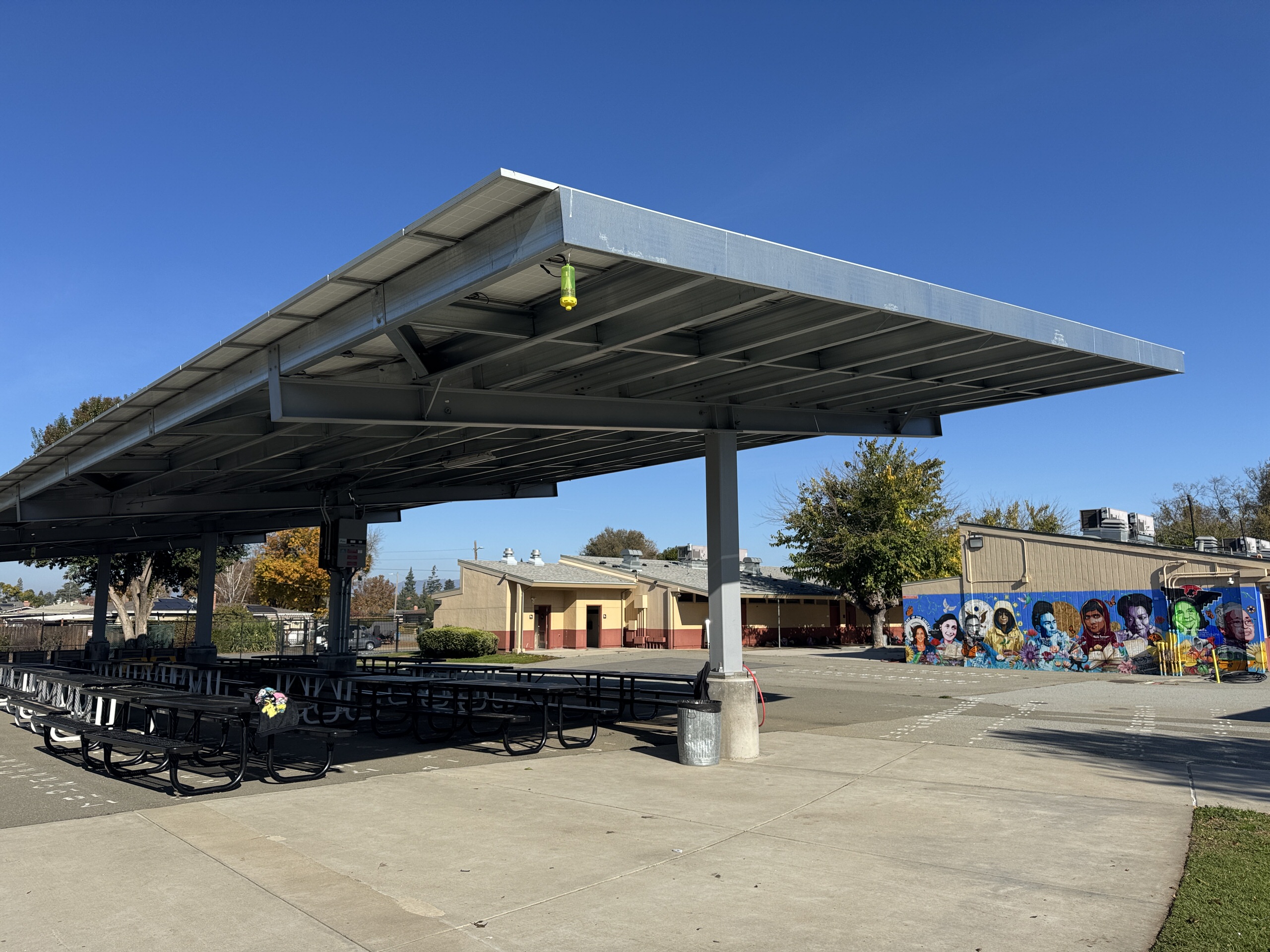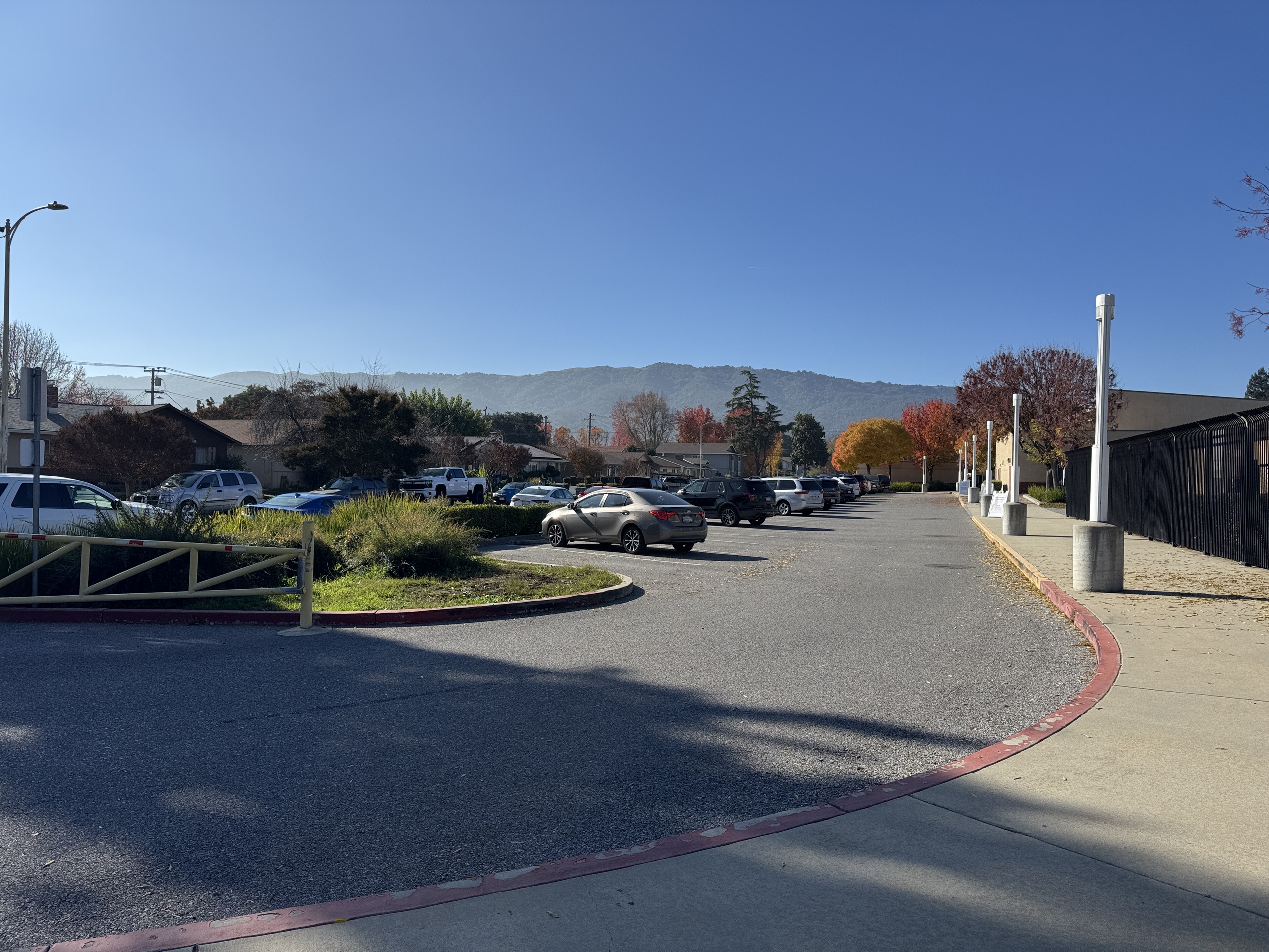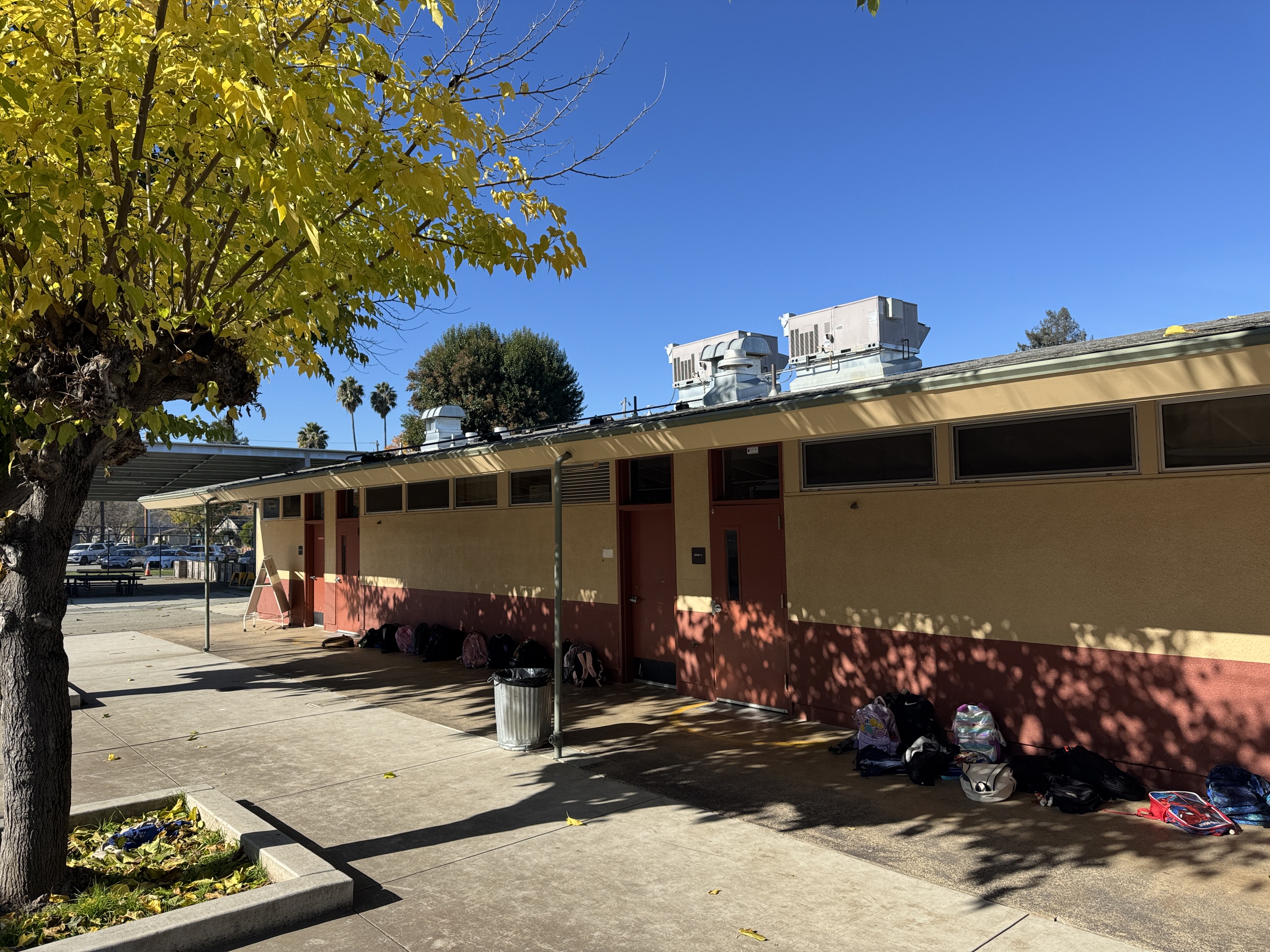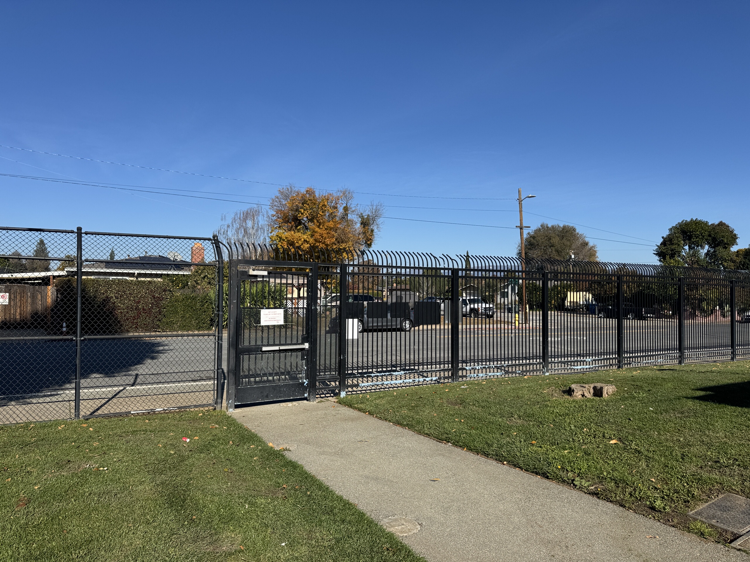 The campus includes blacktop play areas, TK/Kinder and upper-grade play structures, grass fields, solar shade structures, and mature shading trees. While the play structures are accessible, they do not provide adapted or inclusive play equipment. The covered lunch area is limited in size, and additional shade structures would significantly improve outdoor usability. The main grass field experiences substantial drainage issues, resulting in persistent muddy conditions. The site is fully enclosed by chain-link fencing. Three parking lots serve the campus, two of which also function as drop-off areas; however, there is no clearly designated visitor or parent parking, and accessible parking spaces are non-compliant. These deficiencies contribute to congestion, overcrowding, and instances of illegal parking.